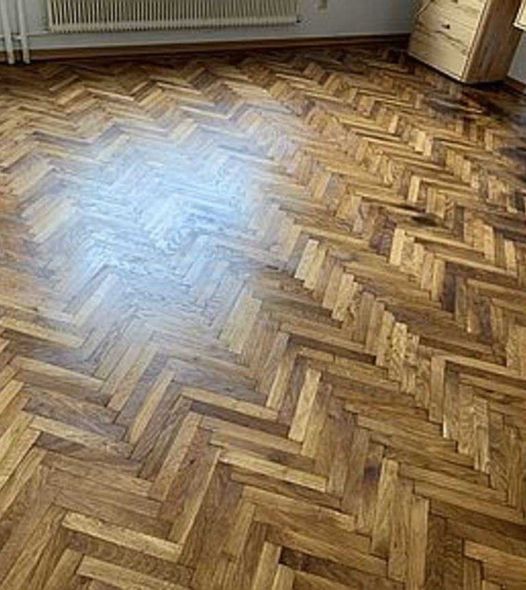 Parkettsanierung mit Schleifen, Kitten und Holzboden-Öl einmassieren