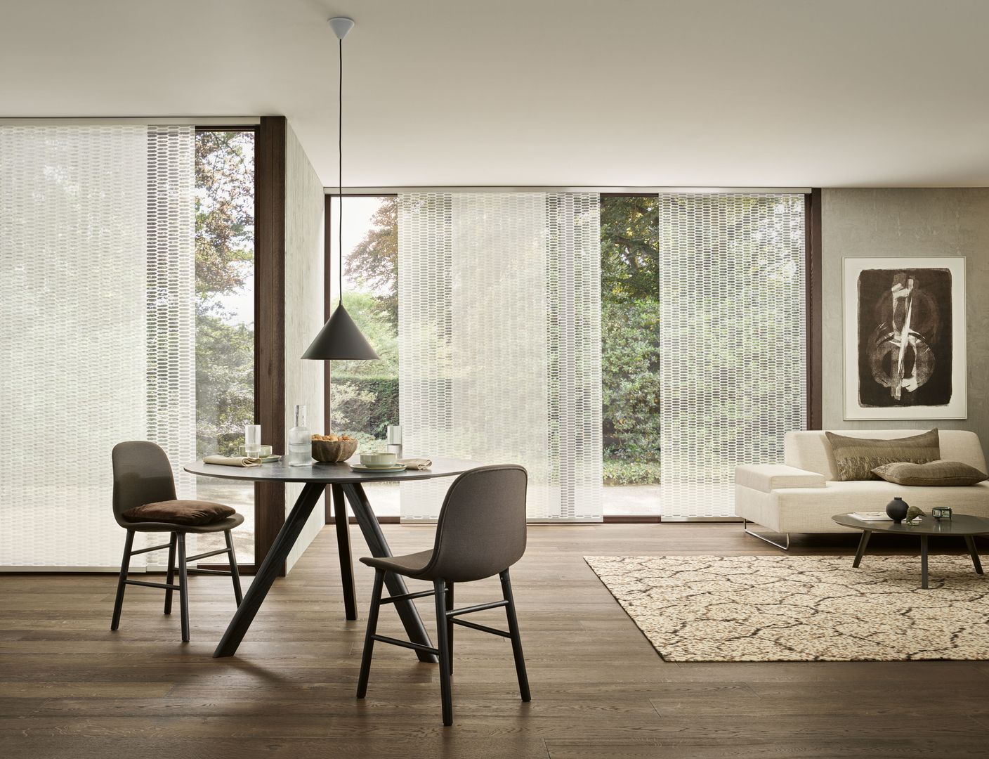 Wer die Symbiose aus puristischem Design, geraden Linien und funktionaler Beschattung für breite Fronten sucht, ist beim Flächenvorhang genau richtig. Durch die mehrläufigen Schienen können sowohl unterschiedliche Abdunkelungsstufen als auch verschiedenste Designs perfekt kombiniert und die Stoffe bzw. Behänge auch jederzeit ausgetauscht werden. In der Regel werden Flächenvorhangsysteme mittels Schleuderschiene oder Schnurzug bedient.
